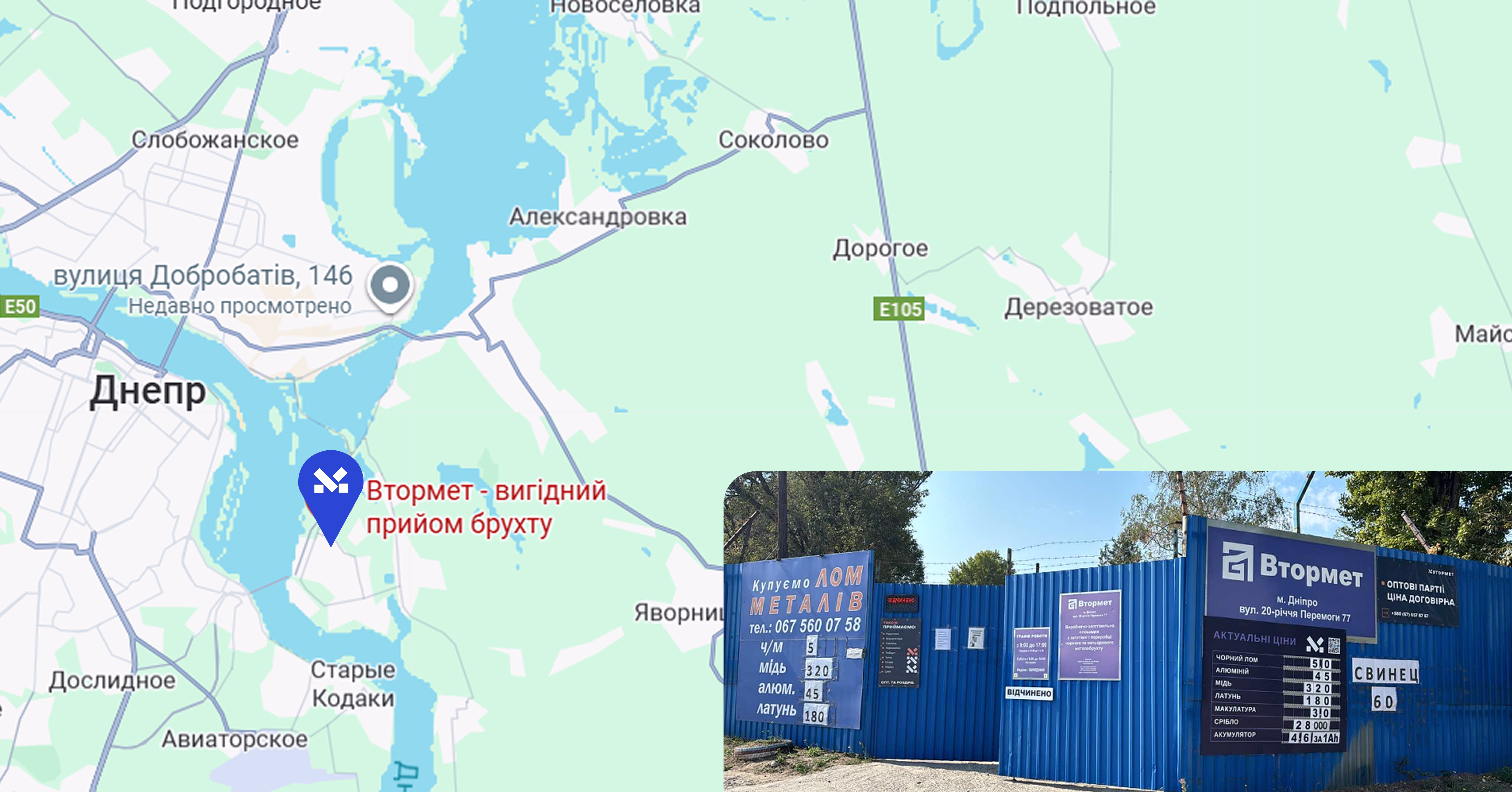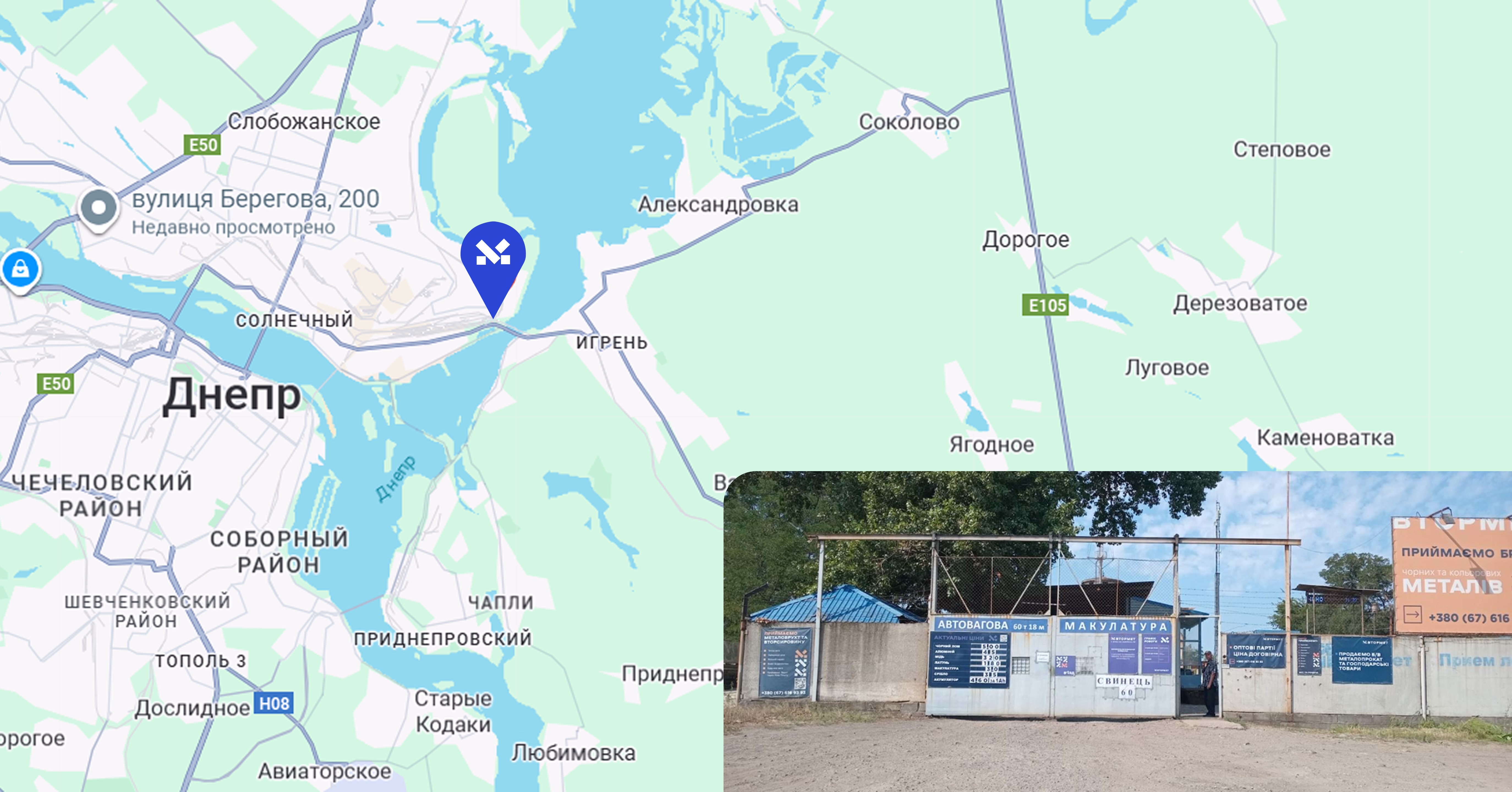 Площадка расположена в Амур-Нижнеднепровском районе г. Днепр и является ближайшим пунктом приема металлолома для жителей с. Кировское, с. Обуховка и Ломивского района г. Днепр.